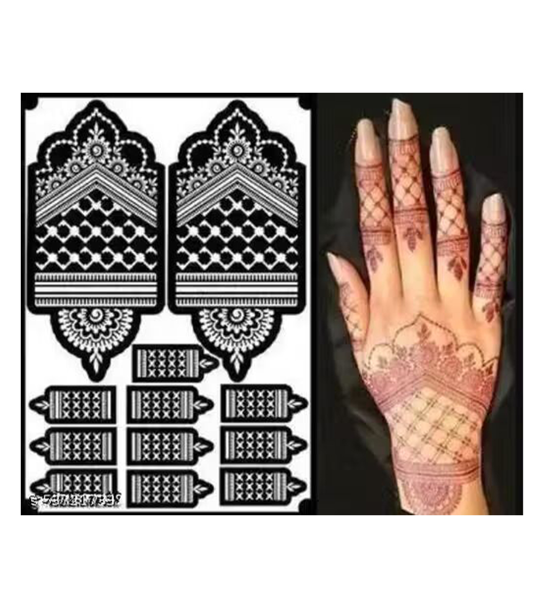Create beautiful Mehndi designs easily with this full hand Mehndi stencil set. Featuring traditional patterns, these reusable stencils help you get neat, professional looking designs without freehand skills. Perfect for weddings, festivals, and special occasions easy to use for women, girls, and kids.